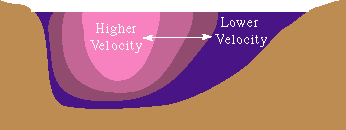 If we use only a few verticals, we could miss the high-velocity band of water, and our discharge measurement will be too low. Using at least 20 verticals gives us a good chance of getting a measurement in the high velocity area and therefore having a more accurate measurement of discharge.