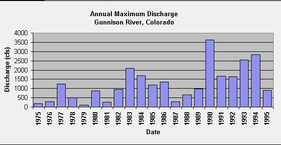 River (1975-1995) reached a 3600 cfs discharge rate in 1990.